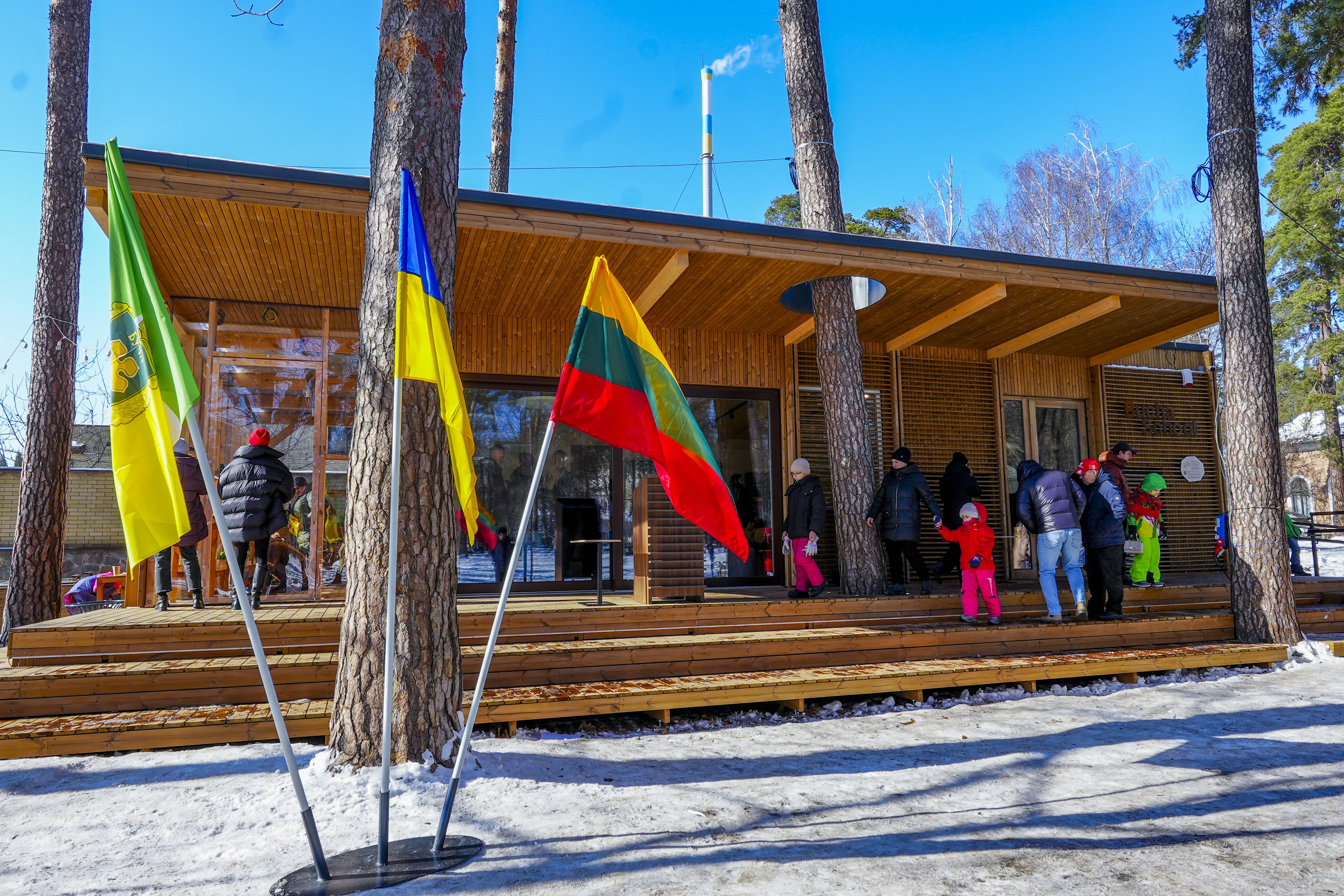Розташування класної серед соснового лісу було обрано свідомо. Для дітей Бучі, які виростають в умовах війни, доступ до спокійного, безпечного природного простору має значення, яке виходить за межі навчальної програми.